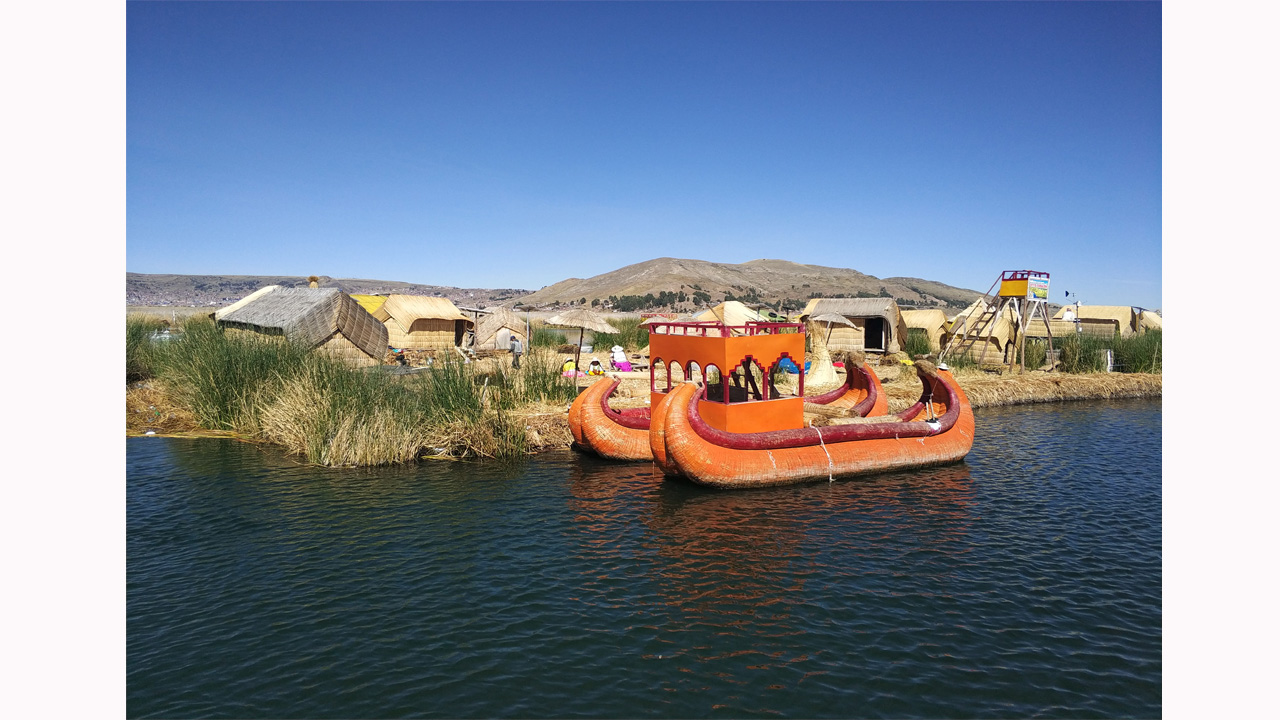 Peru, Lake Titicaca near Puno, Uros floating islands.